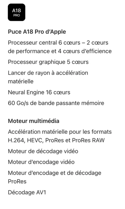Ce qui distingue vraiment le MacBook Neo, c’est sa puce A18 Pro, la même que dans l’iPhone 16 Pro. Apple poursuit ainsi sa transition vers une architecture ARM unifiée.